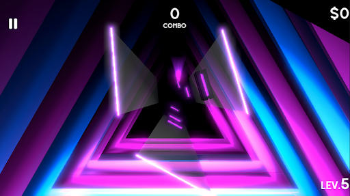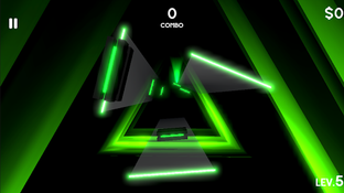 The three lanes of lasers arranged in a triangle cut through the notes, giving the game an unparalleled feeling of control!