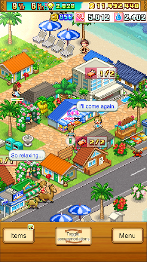 Experience your very own tropical island being transformed into a vacation haven! The game feature of drag to scroll and pinch to zoom is fully supported. Browse for "Kairosoft" to get all of our games, or visit us at http://kairopark.jp. Be sure to explore both our free-to-play and our paid games!