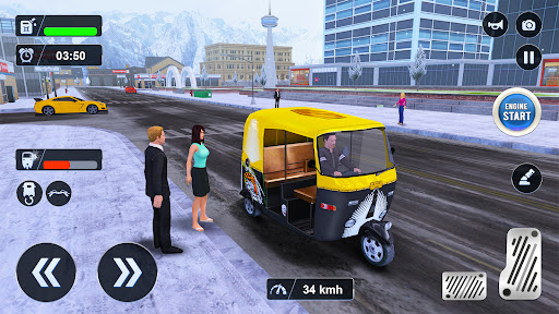 The environments in our tuk tuk simulator game are visually stunning, providing an immersive experience for gamers, but the ultimate snow tracks will pose a challenging task as you have to drive the tuk tuk very carefully during snow. The game controls are simple and user-friendly, making it accessible for all players. Enjoy tuk tuk rickshaw driving!