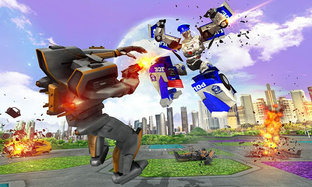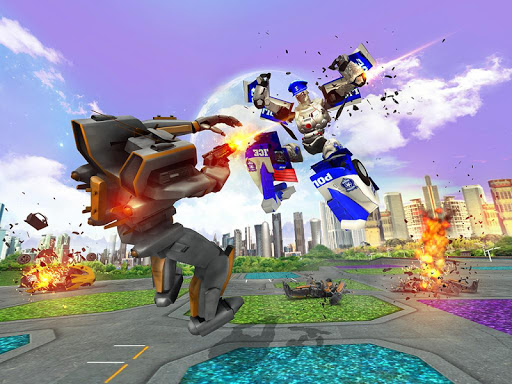 Let's fight back with flying war machines in the robot battle city to demolish all rebellious red robots. Transform robot car into a flying robot to use combat powers like shooting, punches, firing missiles and new police robot car fight skills.