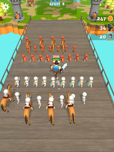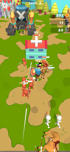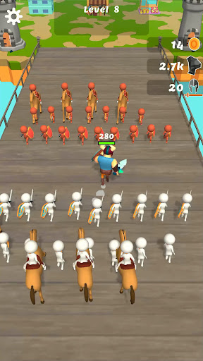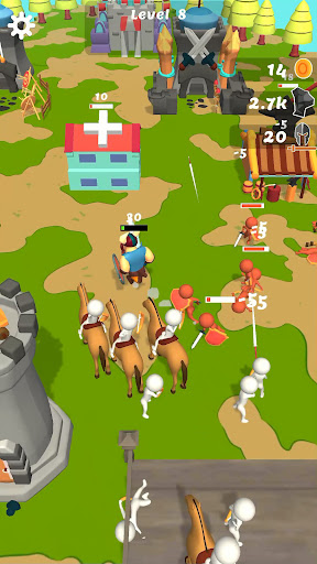 - Hire a wide variety of buff warriors, who will be your shield and swords in the battleground