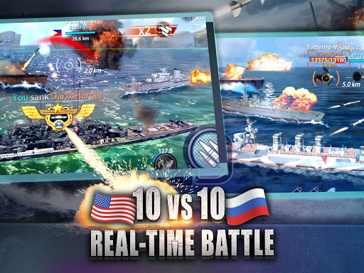 Take precise control of your battleship with intuitive touch screen controls and lead your crew to victory as Captain. Maneuver your battleship with accurate and realistic controls, gain strategic advantage over the enemy, take aim and shoot down the enemy fleets all in real-time!