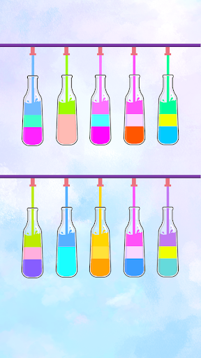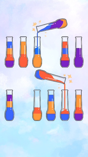 Water Color Sort Puzzle will entertain and sharpen your mind. This color puzzle game will relieve stress and distract you from your daily worries by sorting the colored water to fill each bottle with the same color.