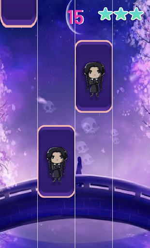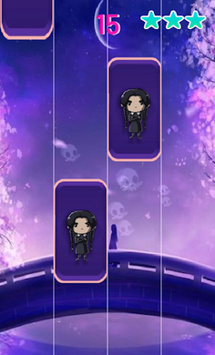 Wednesday addams Piano tiles game music version, you can play music with guitar, piano, cello, flute and many instrument options.