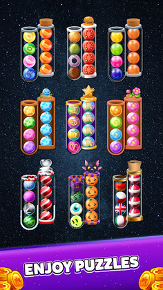 * Smooth controls. Easy tapping with color ball sort puzzles.