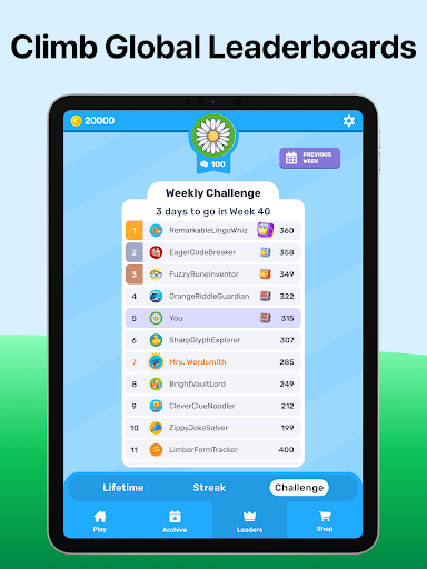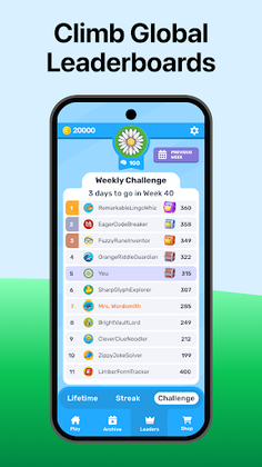 🗓️ Weekly Themes: Guess the daily themed word to earn the biggest reward and boost your leaderboard score. Themes change weekly for exciting social challenges!