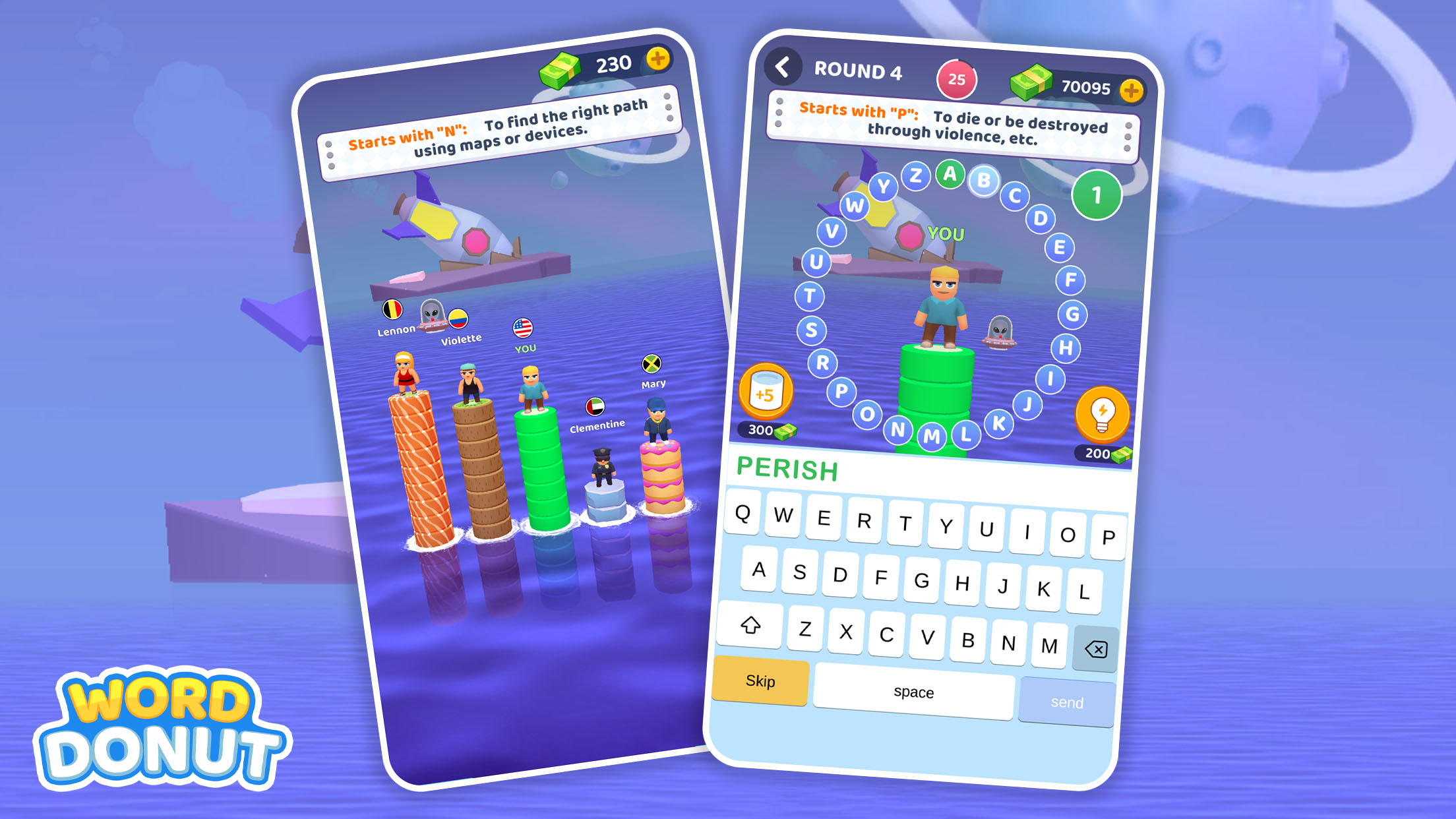 Word Donut is the ultimate pasapalabra for fans of scrabble, trivia word games 💡, typing word games 💻 and other addicting pasapalabra word games! Spin the wheel in this delicious 😋 text game to survive challenging rounds of wordplay. Fill in the blanks before the timer ⏱ melts to guess wacky phrases and dodge dunks in water! 🌊