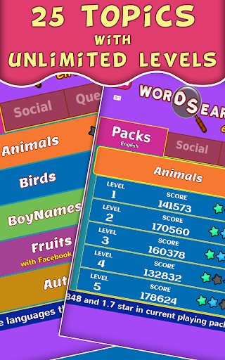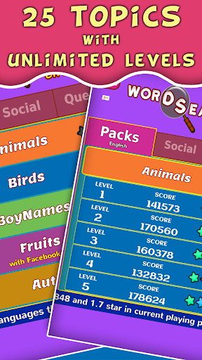 Word Search Game Deluxe offers an unparalleled word search experience, boasting over 10,000 words across 25 different topics. Whether you prefer sports, animals, or food, there's a pack for everyone. Play each level at your own pace, and with unlimited levels, the fun never ends.