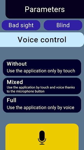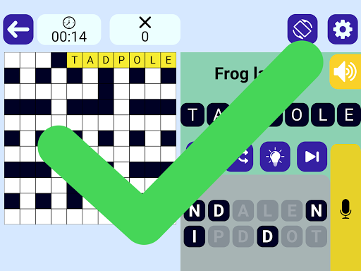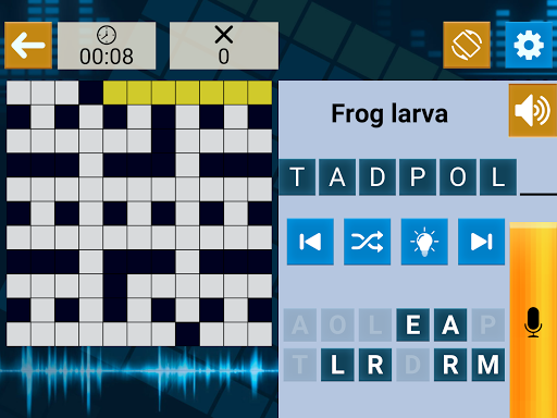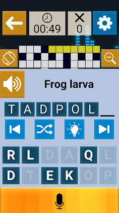 Play crossword without using any tactile action: mode suitable for blind people. The screen becomes the on/off button to activate the microphone and exchange with the vocal assistance