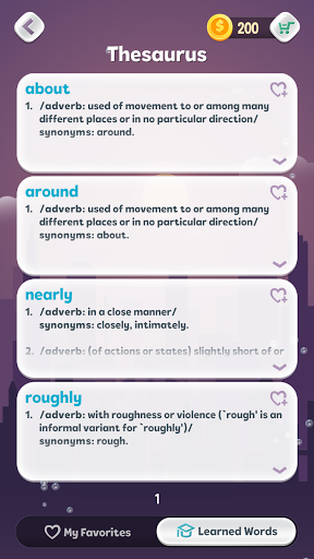 Finally a word puzzle game that helps you build your vocabulary with each level you beat! Find the synonyms of words and test your vocabulary skills as the puzzles become harder with each level. Enhance your vocabulary, increase your memory and retention, and have fun while doing it!