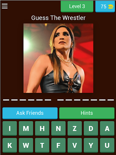 🤼 You will be shown pictures of the wrestlers and all you have to do is to guess the name and you will be rewarded with coins that you can use if you are stuck in the game.