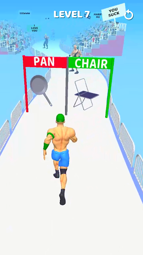 A wrestling themed runner game where the player runs towards the ring having fun interactions as a wrestler.