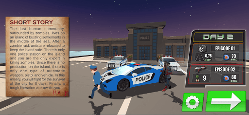The last human community, surrounded by zombies, lives on an artificial island in the middle of the sea made of mobile settlements. Zombies raiding from the sea are surrounded by the police. There is only one police station on the island and you are the only expert in hunting zombies. As soon as the zombie raid notification comes, you have to arrive at the scene with your police car within a limited time. But when the notice comes, the cars and pedestrians in the city traffic are moving in a chaos out of fear. Therefore, it is a difficult task to arrive at the scene by car without hitting pedestrians and cars. When you arrive at the crime scene, you have to kill the surrounded zombies by shooting them with your automatic weapon in a limited time. You must not shoot the people who are escaping in the surrounded area, otherwise, in the second wave of zombies, these people turn into gorilla zombies and attack you. In this way, you will fight zombies for 8 days, and on the 9th day, a tough liberation war awaits you. The fate of humanity is in your hands.