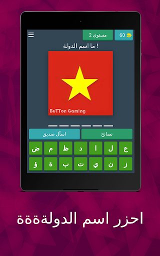 يجب عليك اجتياز المراحل و كل مرحلة تحتوي علم مختلف ، أي علم ستتعرف عليه ستحصل على نقاط ، النقاط التي ستجمعها يمكنك استعمالها في المساعدات التي توفرها لك اللعبة مثل استبعاد حرف او حل السؤال .