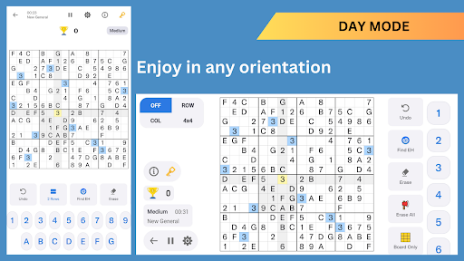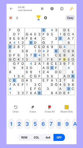 This Sudoku Master is a puzzle consists of 1 to 9 digits and A to G alphabets. Each Sudoku has only one solution. This Mind Sharper Classic 16x16 Sudoku is for your brain, logical thinking, and memory power. It’s a TIME KILLER game.