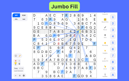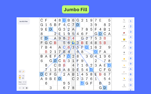 ✓ Jumbo Fill - An unique feature that strategically fills multiple cells at once.
