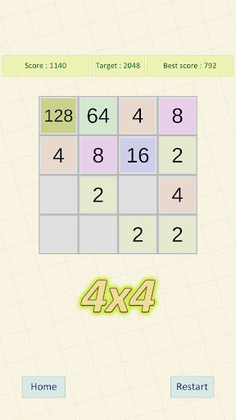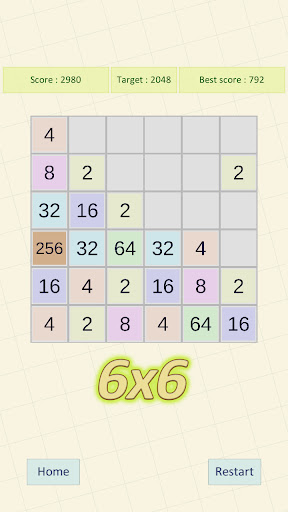 Following are the core features of 2048- Board Size of 3x3, 4x4, 5x5, 6x6- Various Target Numbers like: 2048,4096,8192,16384,32768 and Endless- Different targets for different board sizes- Global Leaderboard where you can see your ranking and compete with the experts of game- No requirement of internet- Smooth swipe control and comfortable portrait view lets you play with using one hand- Light color theme that is easy on eyes- Small game size easy to keep in phone- Quick start: quick navigation whether you start a new game or restart with different targetSo now are you ready to experience the most addictive puzzle game.