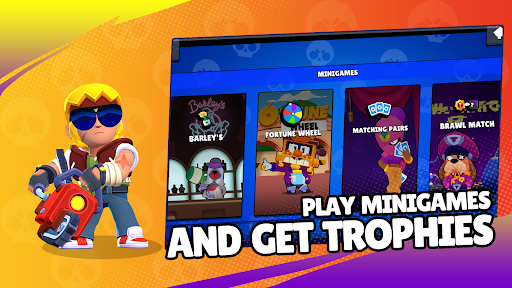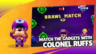 In this game, you must protect themselves from the angry Barley, find all of Tara's cards, spin the wheel of fortune with Griff, assist Colonel Ruffs in matching gadgets to brawlers, progress through the Brawl Pass and Trophy Road, open boxes to receive various rewards, collect all brawlers and skins, and compete with friends through personal statistics.