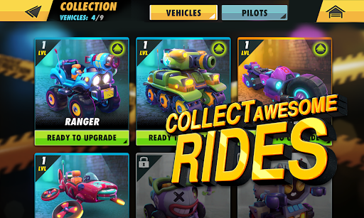 Collect, upgrade, and customize toy vehicles and pilots in real-time PvP battles. Join crews and compete for the top spot in unique game modes.
