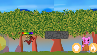In the Adventure of Nexus, ‘Nexus’, the dragon must fight and defeat the evil pig ‘Pyro’ to save princess Cucumis who has been captured by him.