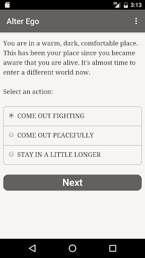 Ever dreamed of experiencing life differently? Say hello to Alter Ego – a text-based interactive fiction game that puts you in control of your own destiny. Think of it as a choose-your-own-adventure gamebook, but with over a thousand multiple-choice questions that dive deeper into your character's life than a traditional gamebook ever could. From infancy to death, you'll make choices that shape your journey towards your ultimate fate as either a male or female character.