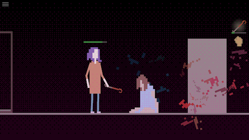 Immerse yourself in an oppressive indie horror atmosphere of unease, enhanced by haunting soundscapes and atmospheric visuals. The pixel art style of this 2D indie horror quest lends a sense of retro nostalgia while amplifying the game's sense of psycho disarray in this quest. Each scene is meticulously crafted to elicit a feeling of profound horror, captivating you and heightening the tension with every pixel.