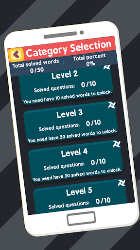 The app consists of 5 levels, each level has an image, and you will have to complete the name of the anime character.