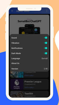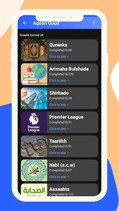Waa application aad ku kobcin karto aqoontaada iyo maskaxdaada, waxaan ku diyaarsan suaalo iyo mawduucyo kala duwan.