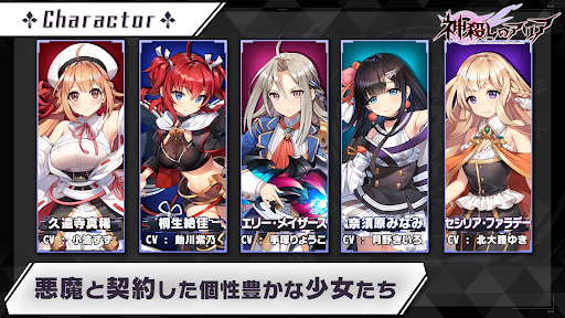 Enter the dark fantasy world of "Aria the God Slayer," where humanity is suddenly faced with a formidable enemy known as the "Gods" who appear worldwide. The only ones who can match them are girls called "Diamis" who have struck a deal with the demons. This is a 3D real-time battle RPG where Diamis uses her "skills" and "link skills" to fight, and features various support functions such as auto-battle and automatic looping.