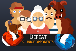 Challenge yourself by playing against our 5 unique opponent characters in single mode, each providing 8 difficulty levels. Unlock and defeat them all! When playing with a friend, both players use the same device to play Challenge Your Friends (2P). As for single mode, the objective of the game is to pin your opponent's arm onto the surface. The game features low poly 3D models in modern design that are fully animated for a great overall experience.