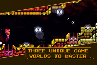 One button lets you fly, the other blasts obstacles out of the way. With a cast of crazed characters, challenging gameplay, and a pulsing musical score, it delivers twitchy platforming goodness.