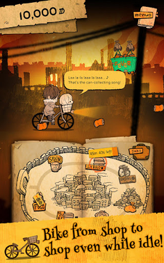 Join the human-headed boy and girl on a journey to escape the town by making money by tapping cans, buying, selling, and scavenging in Caramel Column.