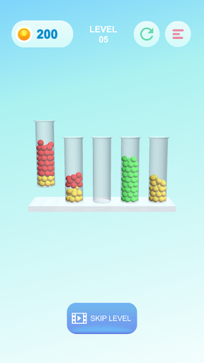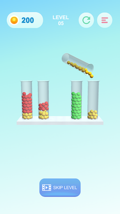 Try to sort the colored balls in the glasses until all colors in the same glass.