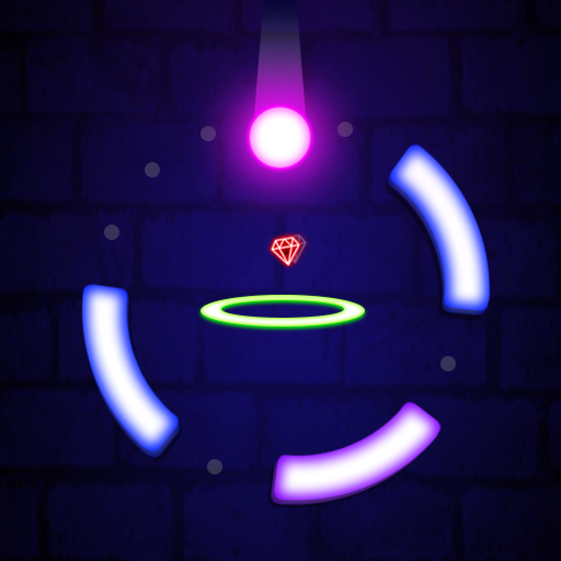 Dunk a ball into glow rings but be careful about rotating colour obstacles.