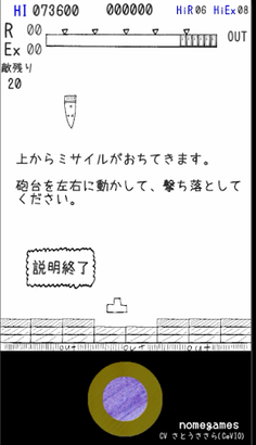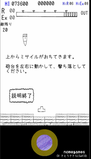 When the missile hits the turret, the upper gauge is reduced. You lose even if the gauge reaches zero.