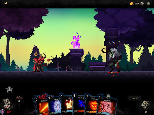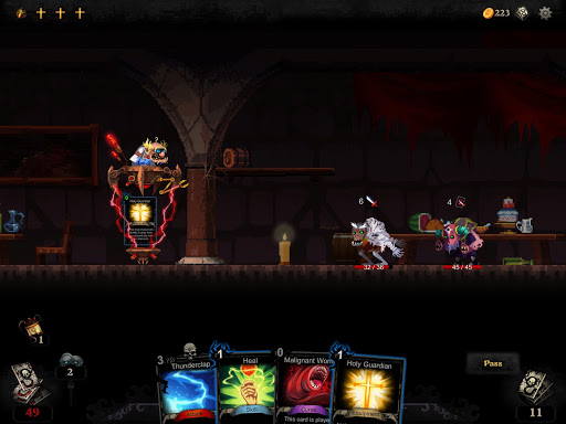During the game, you shall strive ahead, gathering cards to build a unique deck and use it to defeat the enemies getting in your way. You will have to choose between escaping or try to defeat Death, who is relentlessly pursuing you.
