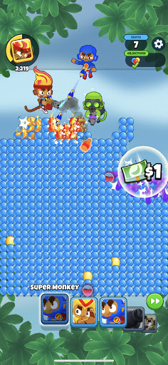 In Bloons Pop, Monkey Town is in shambles and it's up to you to restore it by shooting those darn cute but troublesome Bloons. Take on thousands of challenging levels, each designed with unique obstacles, formations, and Bloons that will test your aim and strategy. You'll get to play as ten different Monkey characters, each with their signature abilities that will help you pop even more Bloons. Merge shots into powerful Mega Monkeys to obliterate entire puzzle sections and unlock bonus Hero Monkey shots to give you an edge in battle.