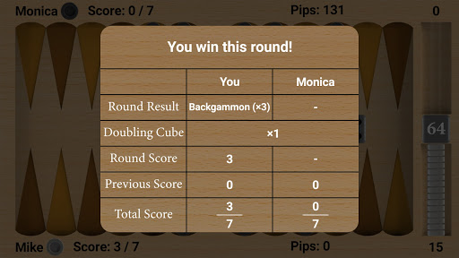 You can also play Backgammon, single-player, with CPU. There are three difficulty levels to choose from: Easy, Medium, and Hard. The difficulty of Hard can be both addictive, and helping you improve. It is always a good idea to develop your skills on your own (with CPU), and use them while playing multiplayer with your friends and family!