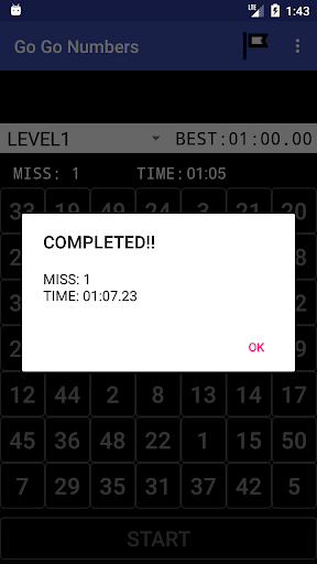 A simple rule to touch the number panel in order from 1 to 50 in order of 1.
