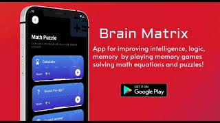 Brain Matrix app for improving intelligence, logic, memory by playing memory games solving math equations and puzzles!