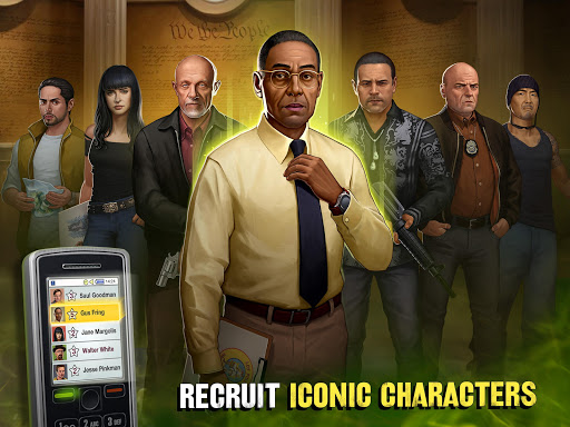 You will have the chance to attract familiar characters from the show, such as Saul Goodman, Mike Ehrmantraut, Gus Fring, and other fan-favorites, and develop your team of skilled specialists. Increase your chances of succeeding by upgrading your specialists' abilities, which can defend your base, boost production, and lead forces against your opponents.