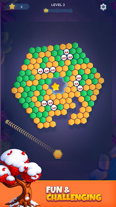 Play strategically, blast all the bubble tiles to clear the board, aim and shoot to break the glass star in the middle to collect all 3 stars trapped inside.