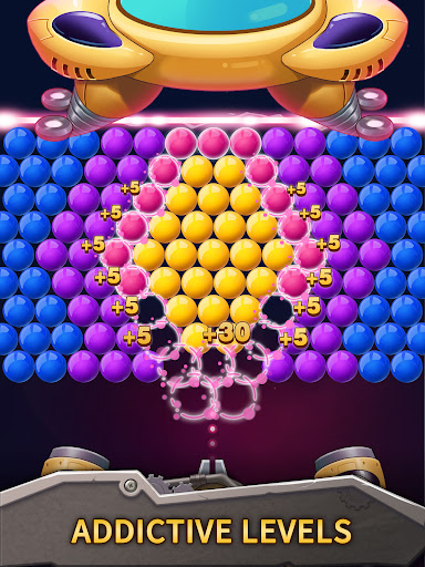 • Match 3+ bubbles with same color & shoot to make them pop!