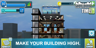 Casual building construction simulation that can get profit automatically by installing various facilities in building.