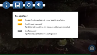 The game takes you on an adventure through the different habitats at Burgers’ Zoo: the tropical rainforest in the Bush, the rocky desert in the Desert, the East-African savannah in the Safari, the tropical coral reef in the Ocean, and the Malaysian jungle in the Rimba. In each habitat, you will receive assignments to take certain pictures of animals. In a digital 360-degree environment, you must set out to find the right photo opportunity! Find the black tip shark in the Ocean, seek out the gorilla in the Park, or look for the aardvark in the Bush. Some things require discovering, while others are simply a matter of the right timing. Successfully completing assignments wins you fun info cards and unlocks new levels. See you in the next habitat!