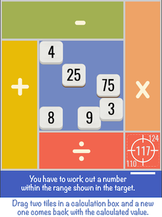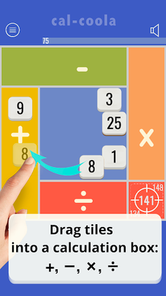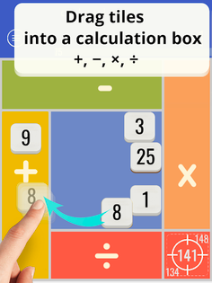 ▷ To calculate: Drag tiles into +, -, × & ÷