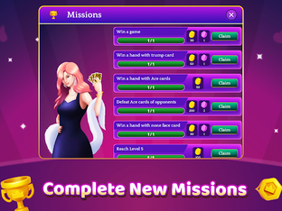 There are five rounds in Callbreak game, including 13 tricks in one round. For each deal, the player must play the same suit card. Spade is the default trump card in Callbreak. Every player has to set a bid. The main goal of this game is that a player has to have the highest bid to win the game. The player with the highest number of points after five rounds will be the winner.