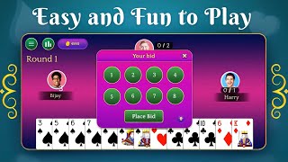 In the beginning, 13 cards are distributed to all four players. If any of the players have not got any Suit card (spade), then the cards will reshuffle. Then the players have to set a bid by looking at the possibilities of the tricks they can get. A player throws a card, and others have to throw a higher card of the same suit to win that trick. A player must throw a higher number card of the same suit than their opponent has thrown. If a player has not got any card of the same suit, then that player can throw a trump card. A player can win any trick with the trump card unless another player throws a higher trump card. A player can throw other cards if they don't have any trump card left. When the game ends, bids are counted as points. If a player cannot win as many tricks as they had bid, then their bid turns into a minus point. E.g., if a player bids three and he only wins two tricks, then his points for the round will be minus 3. The extra tricks won by a player will not be counted. The game continues for five rounds. In the end, the points from all rounds are added up. Whoever has the highest number of points wins.