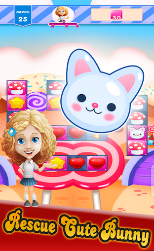 Simple and fun candy matching game with no complicated features. You have to match 3 or more candies of the same color and burst them.