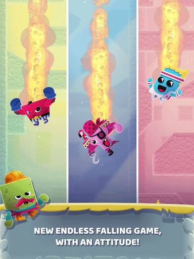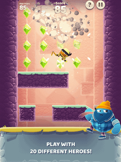 * Choose between 20 different heroes to free fall and crash the blocks!